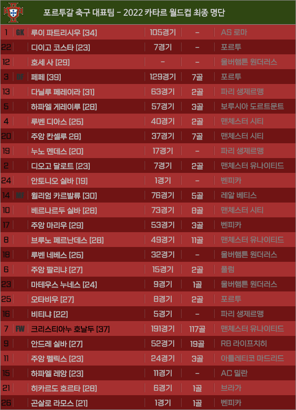 [피파] 포르투갈 - 2022 카타르 월드컵 최종명단