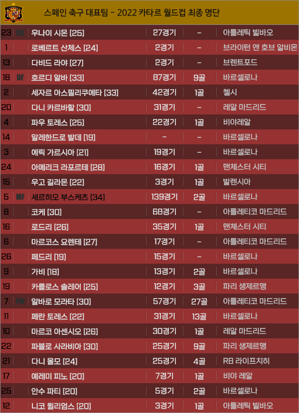 [피파] 스페인 - 2022 카타르 월드컵 최종명단